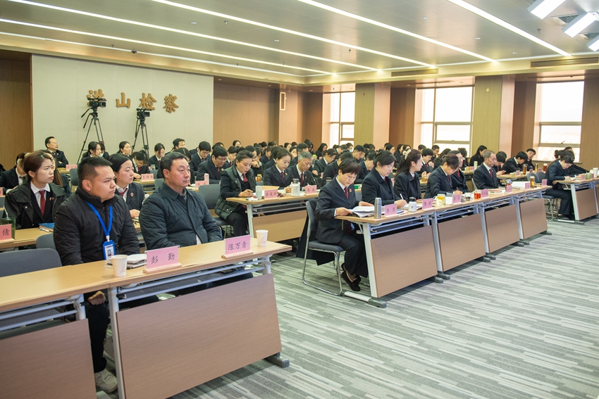 会上,11位部门负责人分别作现场述职或书面述职,总结2025年拼搏成绩,分析存在的不足和问题,列出2026年工作计划,主动接受全院干警和人民监督员评议。